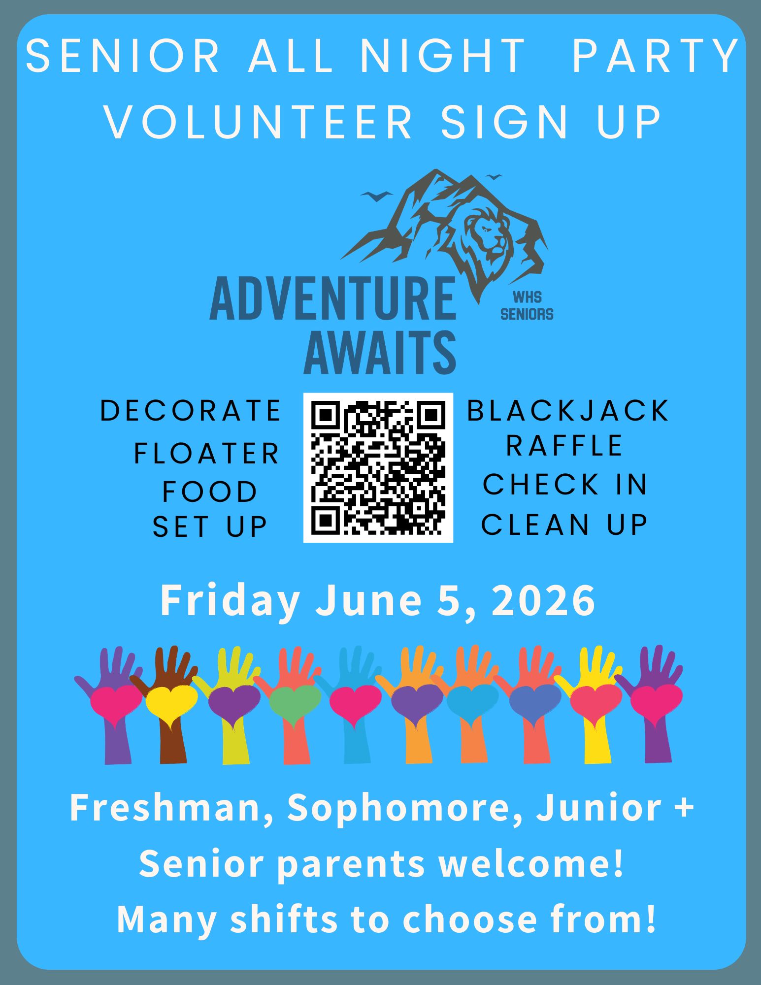 Calling all 9th-12th grade parents!! We need your help to plan this year’s Senior All Night Party. Join us for our next planning meeting: